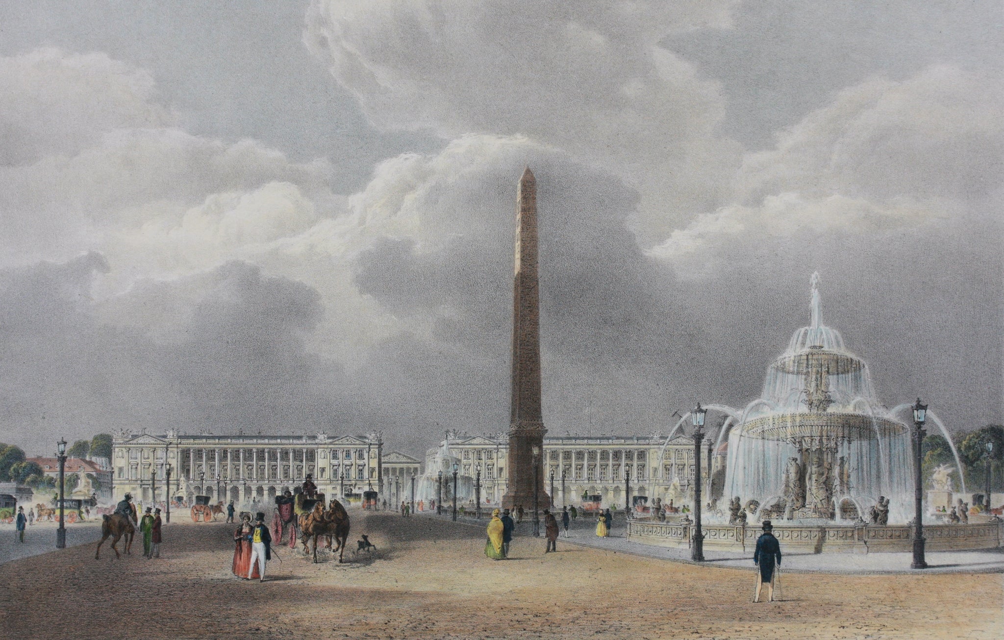 La place de la Concorde vue de la terrasse du bord de leau le roi LouisPhilippe traverse la place e Drawing by Jean Charles Geslin French - Fine Art America